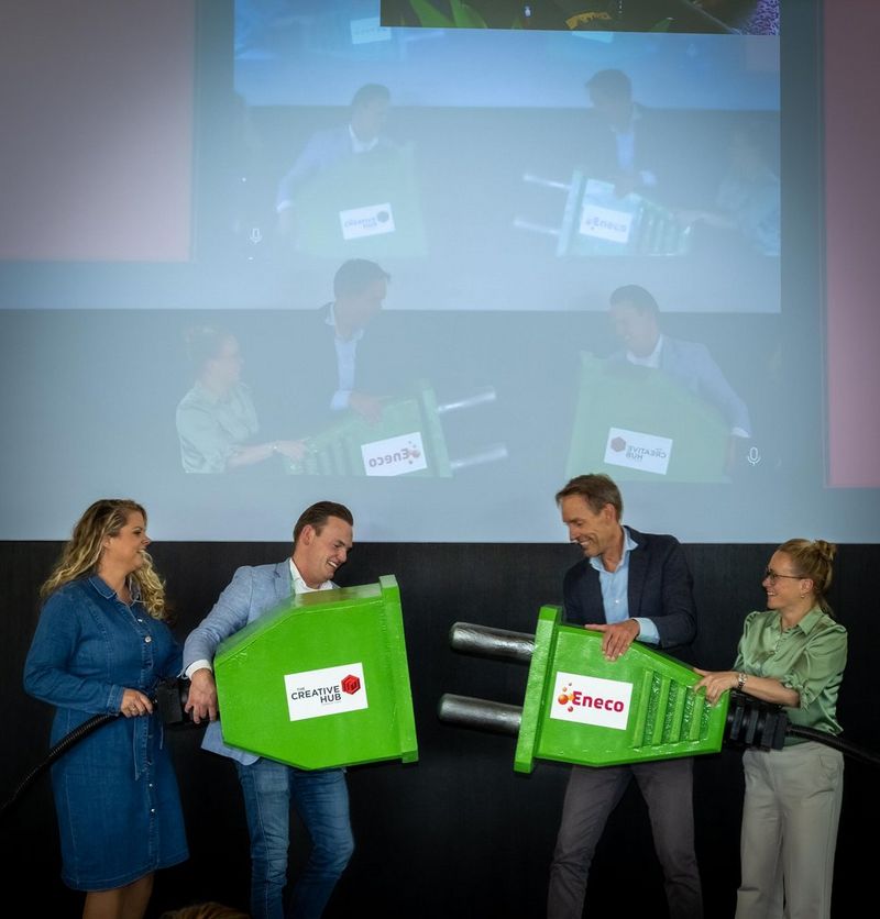 Tegelijkertijd was er in 2022 ook turbulentie in de markt rondom de energiecrisis. Dat, in combinatie met de uitrol van de nieuwe duurzaamheidscampagne, deed bij Eneco de behoefte groeien aan een echte inhouse agency. Brand manager Merel Martensen: ‘We hebben een prachtige merkbelofte waarmee we de urgentie van de energietransitie en onze voortrekkersrol daarin willen benadrukken. Daarom is het belangrijk dat alles wat wij communiceren strookt met waar wij als merk voor staan. Dat is best een uitdaging als je met vele tientallen marcom-mensen gebruik maakt van evenzoveel verschillende creatieve bureaus. Hoe behoud je dan merkconsistentie en voorkom je dat dingen dubbel worden gedaan? Tegelijk willen we ook direct kunnen reageren op onverwachte marktontwikkelingen. Dan heb je korte lijnen en lage drempels nodig. Door dit nu centraal in te richten met The Creative Hub borgen we de kwaliteit, snelheid en efficiency die we nodig hebben.’