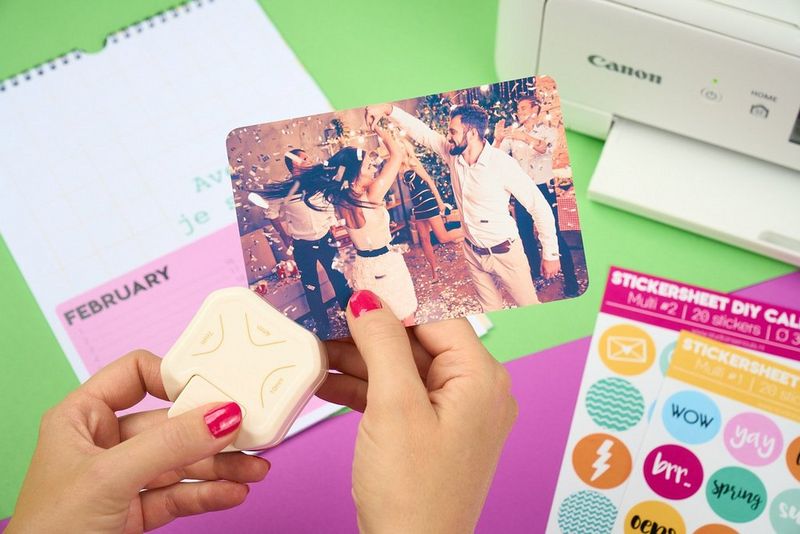 Als eerste ronden we de hoekjes af van de foto. Dit doe je eenvoudig met een hoekjespons maar met een schaar lukt het ook.